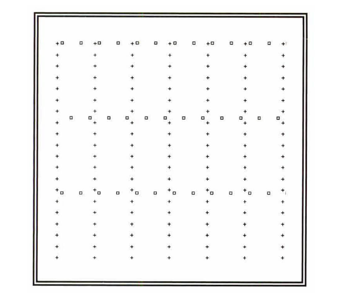 The Button Patch method, shown in Figure 7 was developed by ARCO and is now routinely used in all their 3-D surveys. Each "button" contains a tight pattern of receivers, typically 6 x 6 or 8 x 8. Several buttons are combined in a checker-board pattern to form the receiver patch. Many shots are fired into the receiver patch – often shots all over the survey are fired before moving the receiver patch exactly half its dimension.