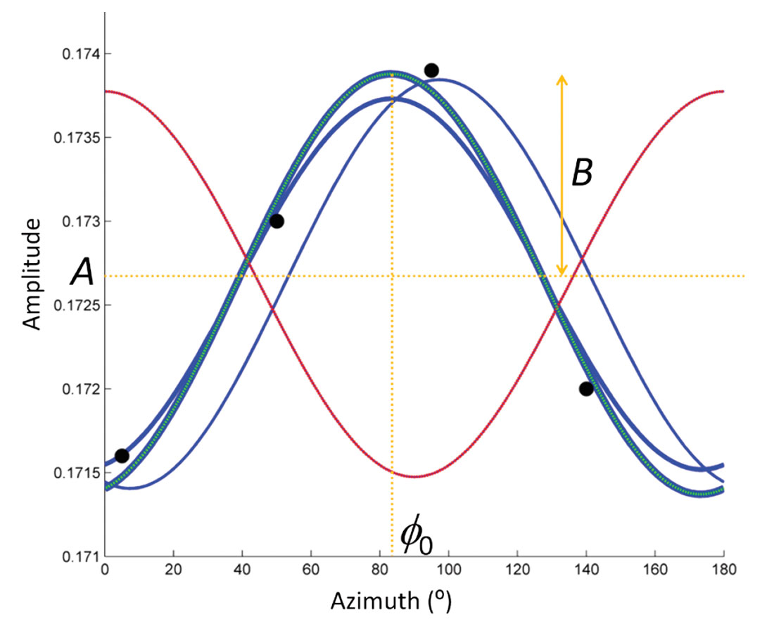 The same initial model and inversion parameters used for the above data are then applied to an inversion of gathers processed into four azimuthal sectors, this time with incidence angles restricted to 27º due to data limitations. Once mechanical properties are calculated, a function of the form
