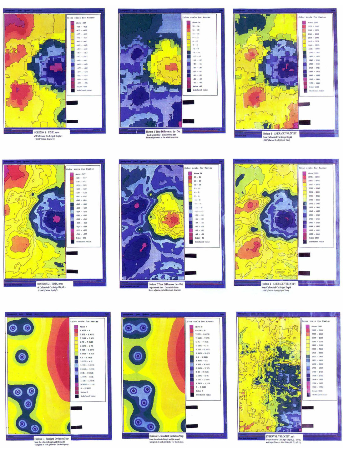 The study shown in the flowchart is an Alberta Cretaceous horizon in an 8 square kilometre area. The result is a subsea depth structure map on the horizon. Comparing a depth map based on Kriged well tops illustrates the added detail from applying collocated co-Kriging. Approximately 55 wells were utilised in the solution. The co-Kriged depth map was used to compute an adjusted time horizon to provide a stratigraphic datum for further seismic interpretation.