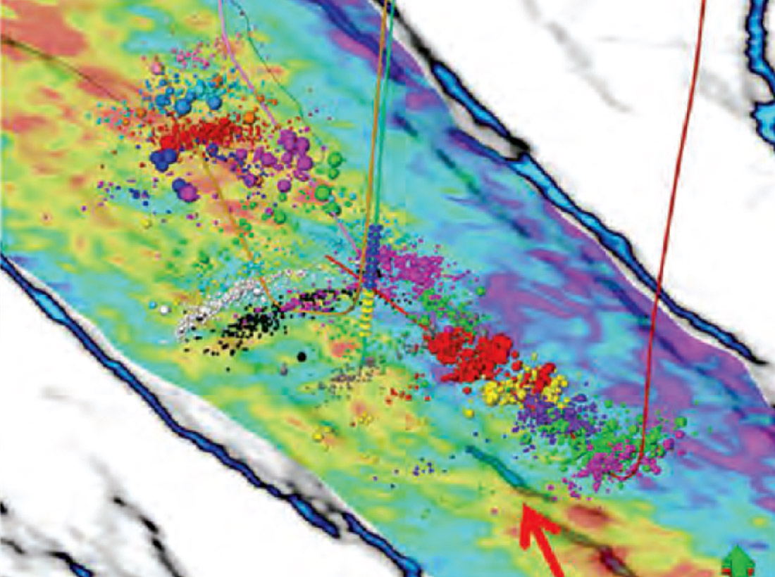 The power of 3D seismic data lies in the fact that it is our only data that enables us to observe and measure changes within our reservoir between our existing wells. We can move beyond basic 3D seismic mapping, and improve our reservoir understanding, by jointly analyzing seismic and microseismic data (Figure 5). Microseismic data gives us clues about the interaction between the hydraulic fracs and the reservoir. Seismic data helps us understand why the microseismic data, and by inference, why the hydraulic frac behaviour changesspatially.