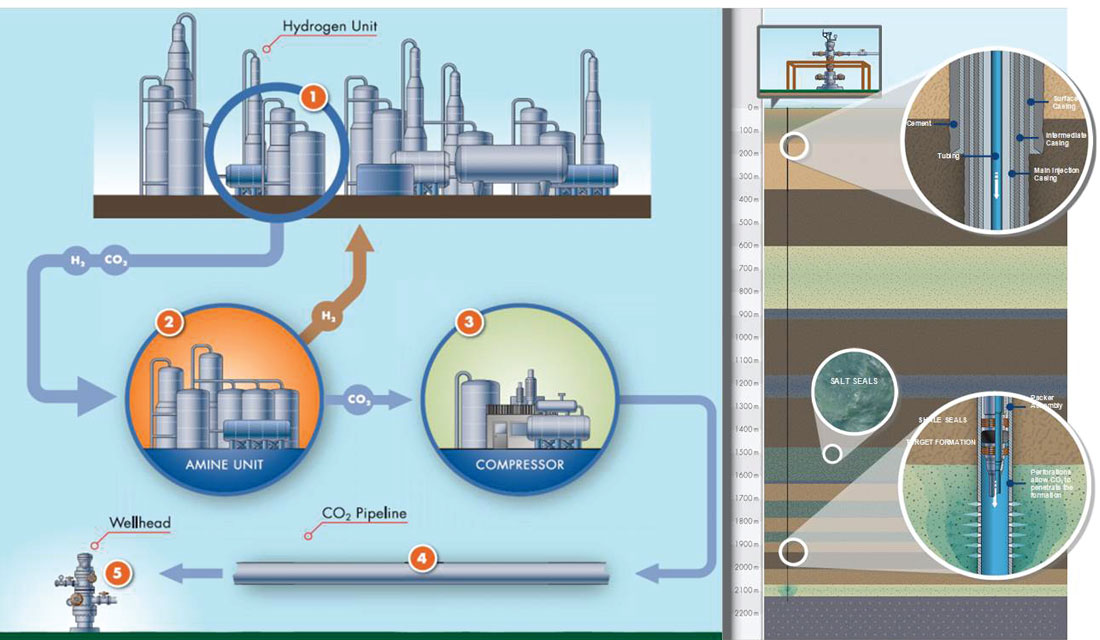 In September 2012, Shell, on behalf of the Athabasca Oil Sands Project venture (Shell Canada Energy, Chevron Canada Limited, Marathon Oil Canada Corporation), announced that it was proceeding to construct the Quest Carbon Capture and Storage (CCS) project near Fort Saskatchewan. Quest is now capturing more than more than one million tonnes of CO2 per year from the Scotford Upgrader, becoming the world’s first large-scale commercial application of CCS at an oil sands operation. It is a fully integrated project, involving CO2 capture at the bitumen upgrader, transportation along a 65 km pipeline, and CO2 storage in a deep saline aquifer (the Basal Cambrian Sands). The Quest project achieved full commercial operation in September 2015.
