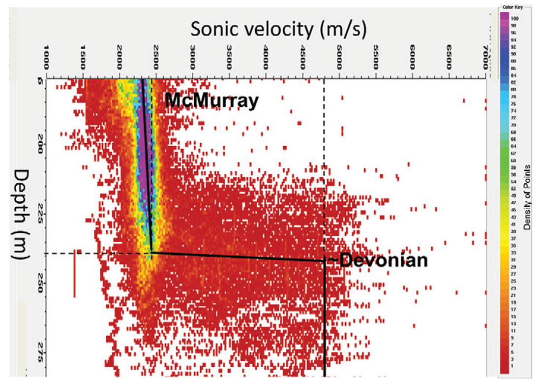 The McMurray – Devonian interface is a sizeable velocity contrast